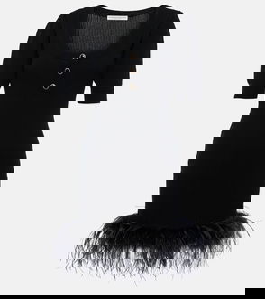Feather-trimmed Wool Minidress