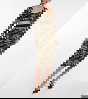 Camouflage High-rise Wide-leg Cotton Cargo Pants