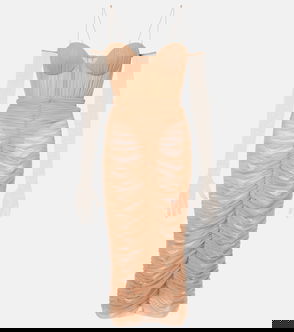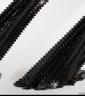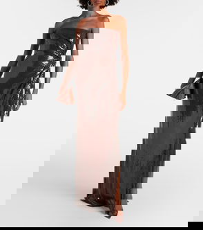 Column Embellished Pinstripe Velvet Maxi Skirt