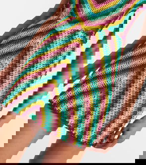 Striped Crochet Cotton Beach Cover-up