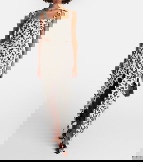 Printed Strapless Denim Midi Dress