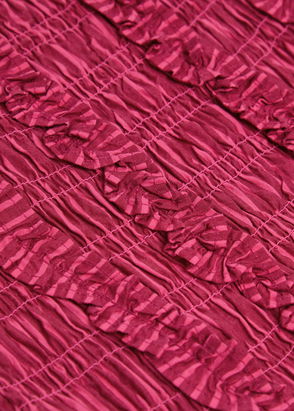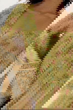 'Small and slow' London brand, Damson Madder's clothing is characterised by relaxed fits, feminine details and playful prints. Denim meets with ruffles, bows and embroidery, while cargo trousers might be rendered in an irreverent leopard print. Along with midi dresses, floral quilted jackets and oversized collar blouses, its gilets and long skirts are bestsellers.