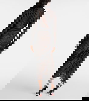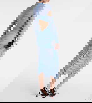 Draped Cutout Mesh Midi Dress