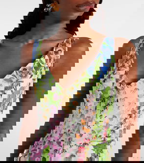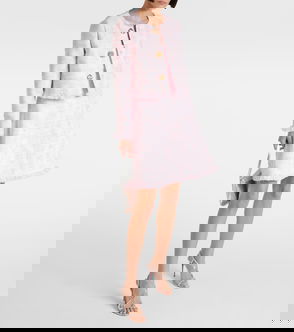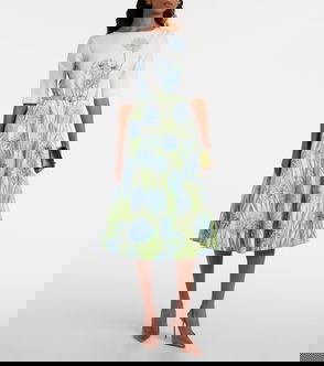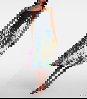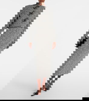 Floral-appliqué Cotton-blend Tweed Midi Dress