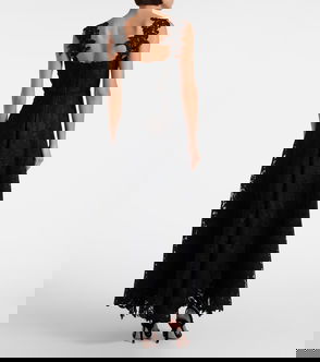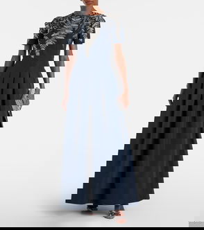 Floral-appliqué Wool-blend Crêpe Maxi Dress