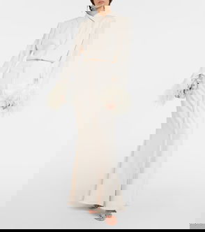 Feather-trimmed Crêpe Maxi Shirt Dress