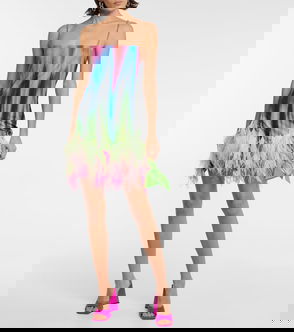 Fujiko Feather-trimmed Printed Minidress