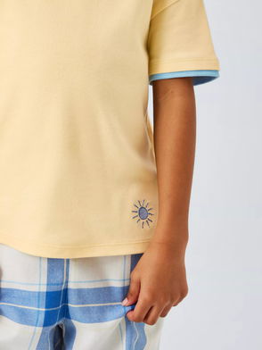 Kids' Mix-And-Match Cotton Embroidered Sun Pyjama Top, Yellow