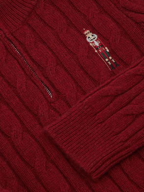 Wool-Blend Half-Zip Nutcracker Jumper In Dark Red