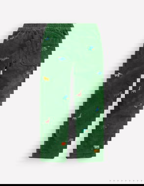 Pull-on Cord Trousers-Prehistoric Animals Embroidery