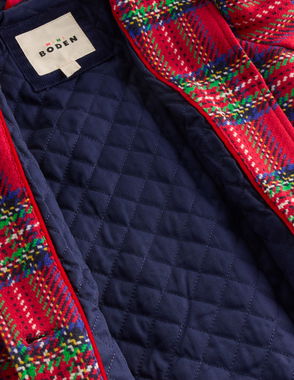 Reversible Padded Borg Coat-Multi Flower Check