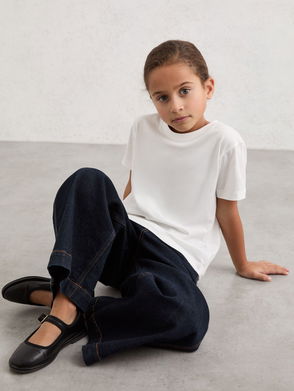 13-14 Yrs Cotton Oversized Cropped T-Shirt In Blue