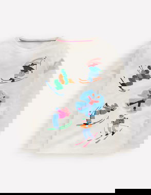 Long Sleeve Bouclé T-shirt-Soft Ivory Skiers
