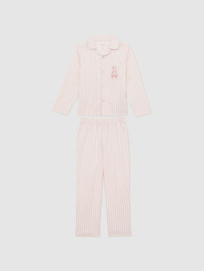3-9 Yrs Cotton Embroidery Stripe Pyjama Set In Pink