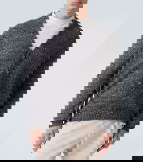 Patch-Pocket Long-Sleeve Wool-Cashmere Blend Cardigan