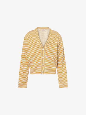 Knitted-Logo V-Neck Wool-Cashmere Blend Cardigan