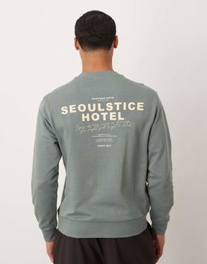 Cotton Sweatshirt With Seoul Graphic In Green