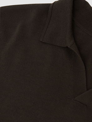 Merino Wool Open-Collar Polo Shirt In Chocolate Brown