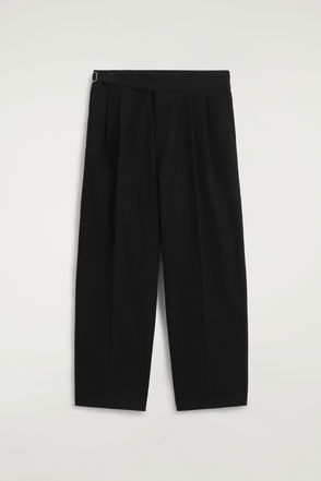 BELT-DETAIL PLEATED WIDE-LEG TROUSERS