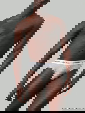 Icon Cotton Stretch Briefs, Pack Of 3,Grey Heather/White/Black