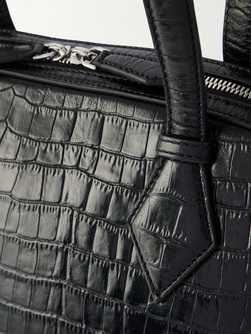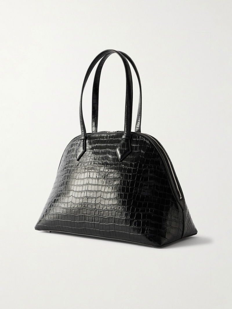 A Emery's 'Harnick' tote is a refined take on a classic bowling style. It's crafted from croc-effect leather in a structured, tapered shape and has enough space for your phone, book and wallet. The minimal design means it'll complement most outfits.