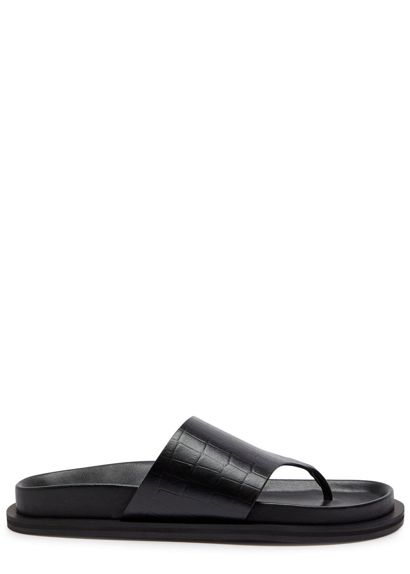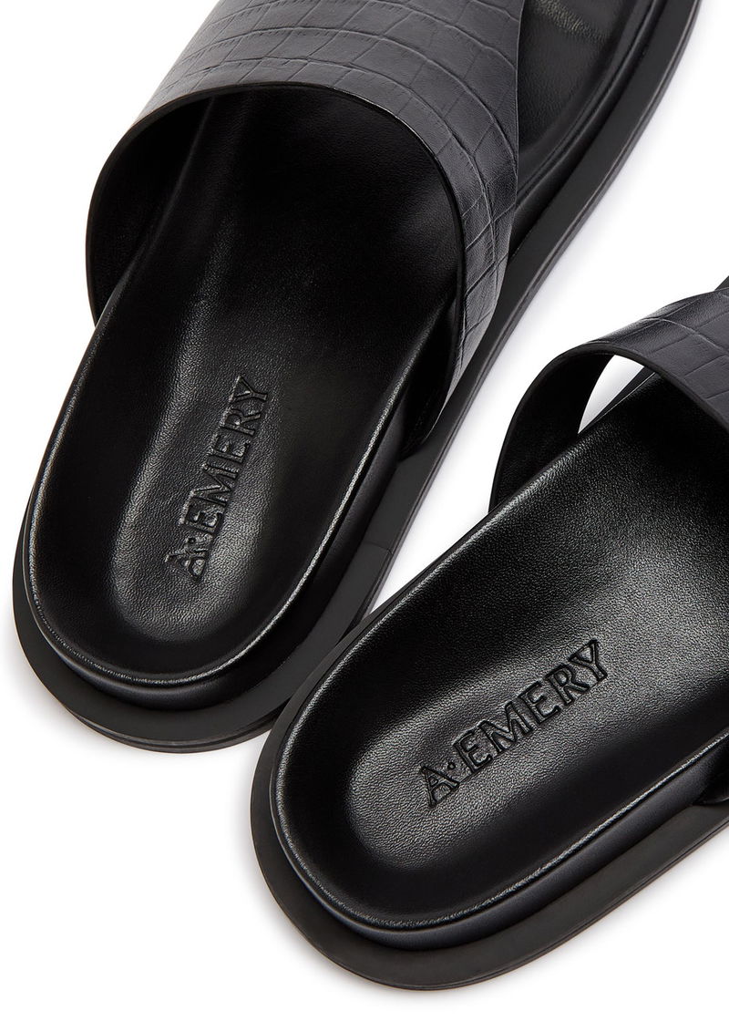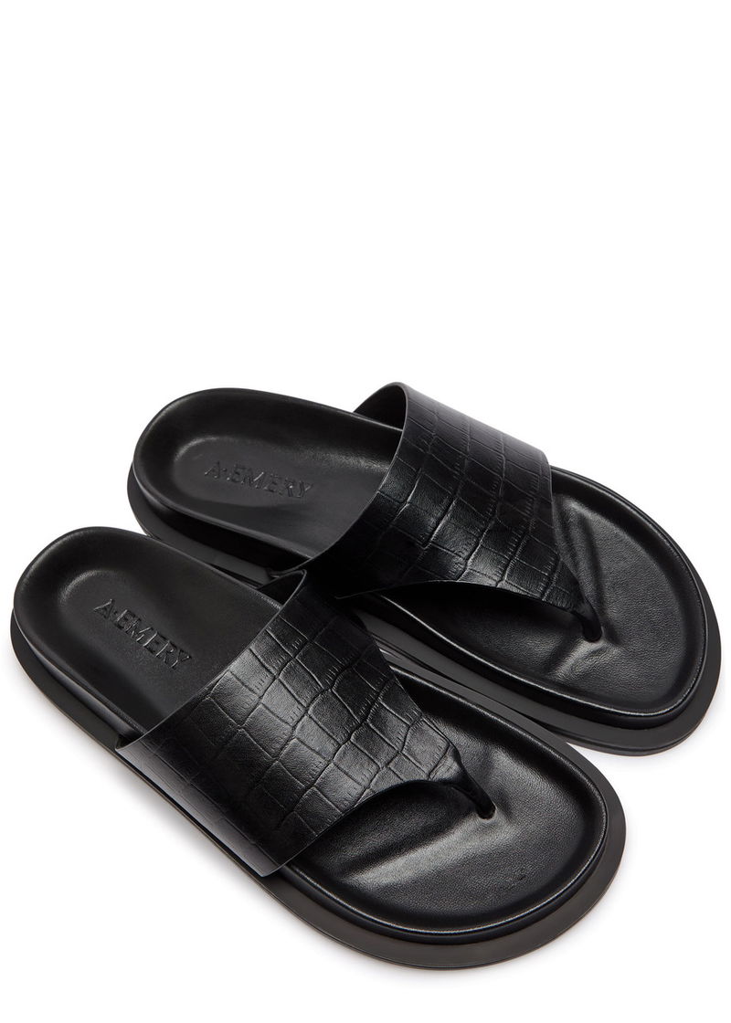 A.Emery suede flip flops.