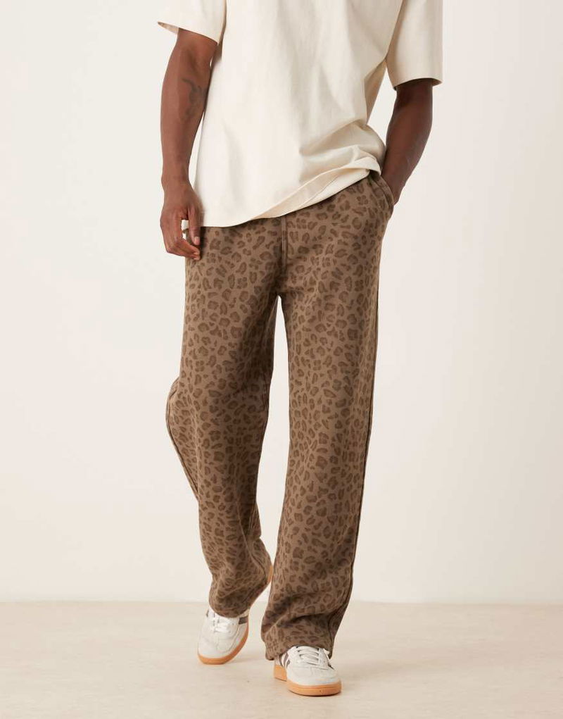 Abercrombie & Fitch Baggy Open Hem Joggers In Leopard Print