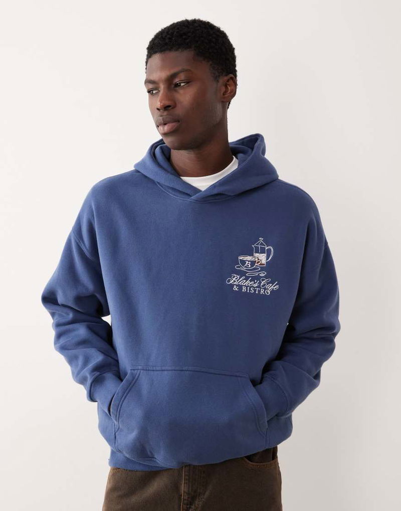 Abercrombie & Fitch Coffee Graphic Hoodie In Navy