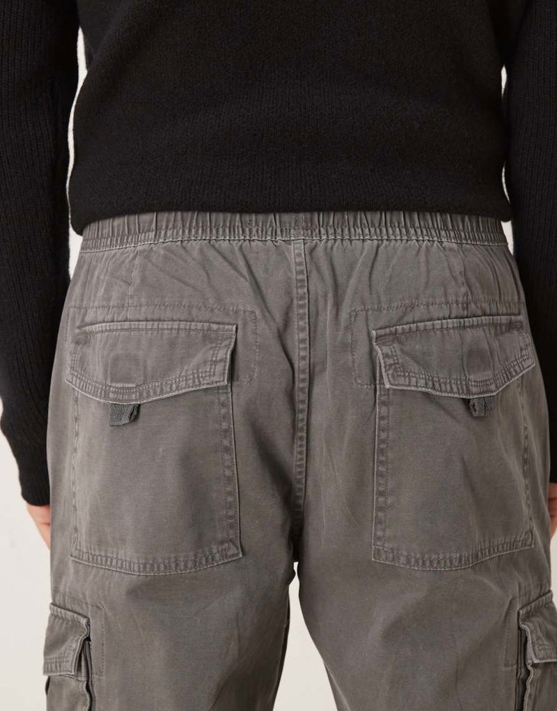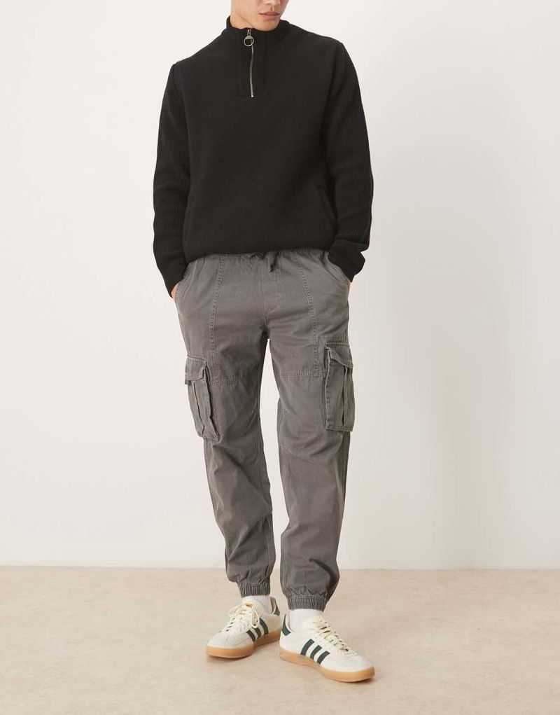 Abercrombie & Fitch Cuffed Cotton Cargo Trousers In Grey