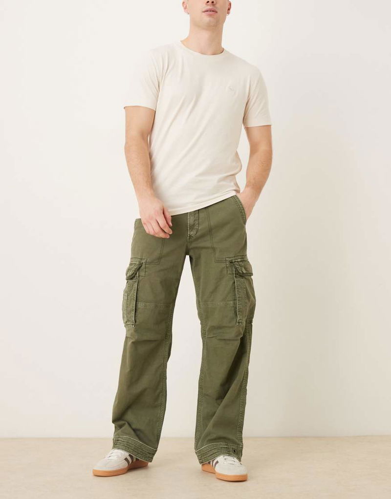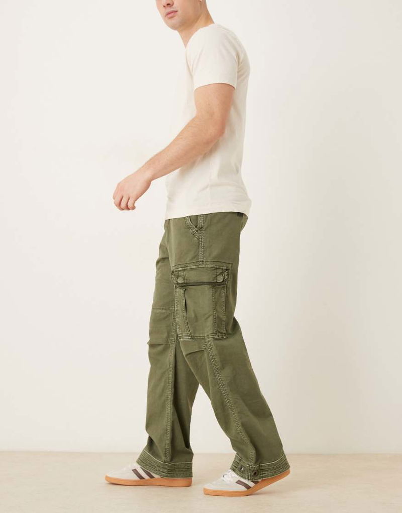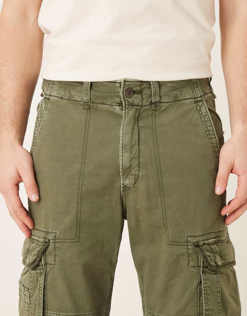 Abercrombie & Fitch Drawstring Waist Cargo Trouser In Washed Green