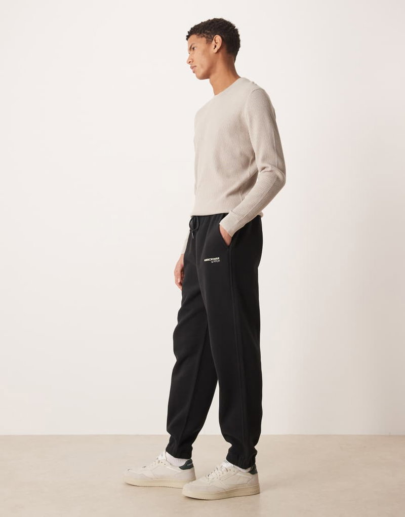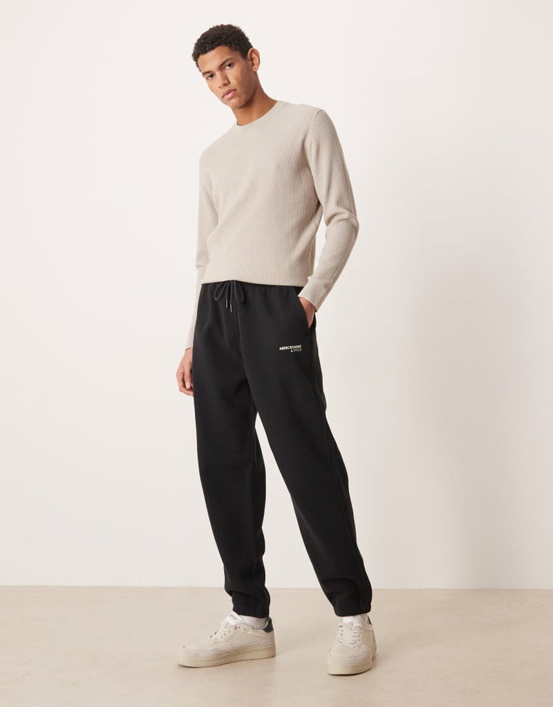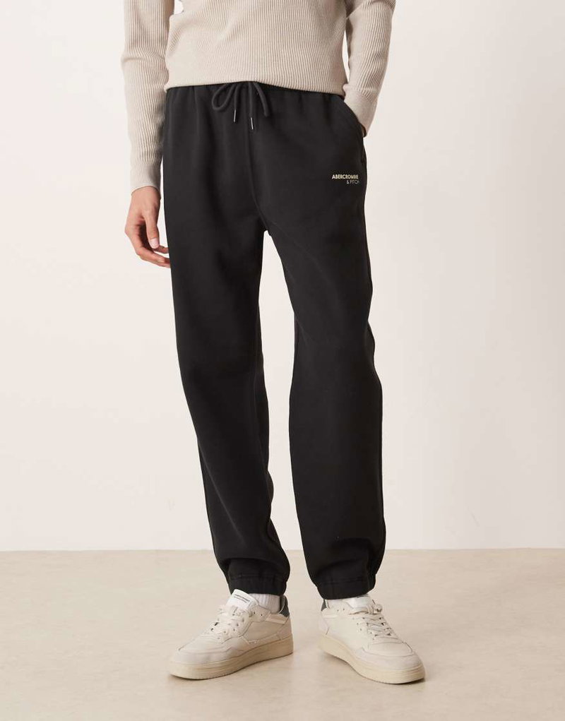 Abercrombie & Fitch Logo Detail Relaxed Cuffed Sweatpants In Black