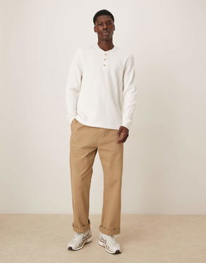 Abercrombie & Fitch Long Sleeve Waffle Henley Top In Black