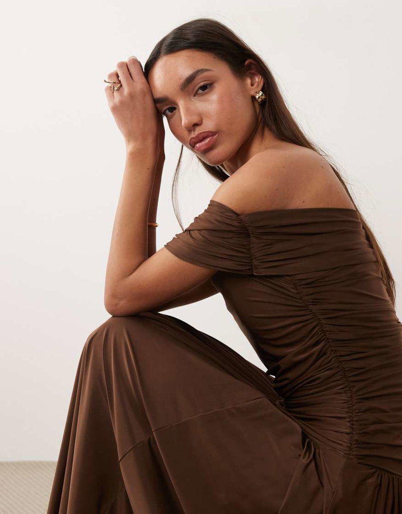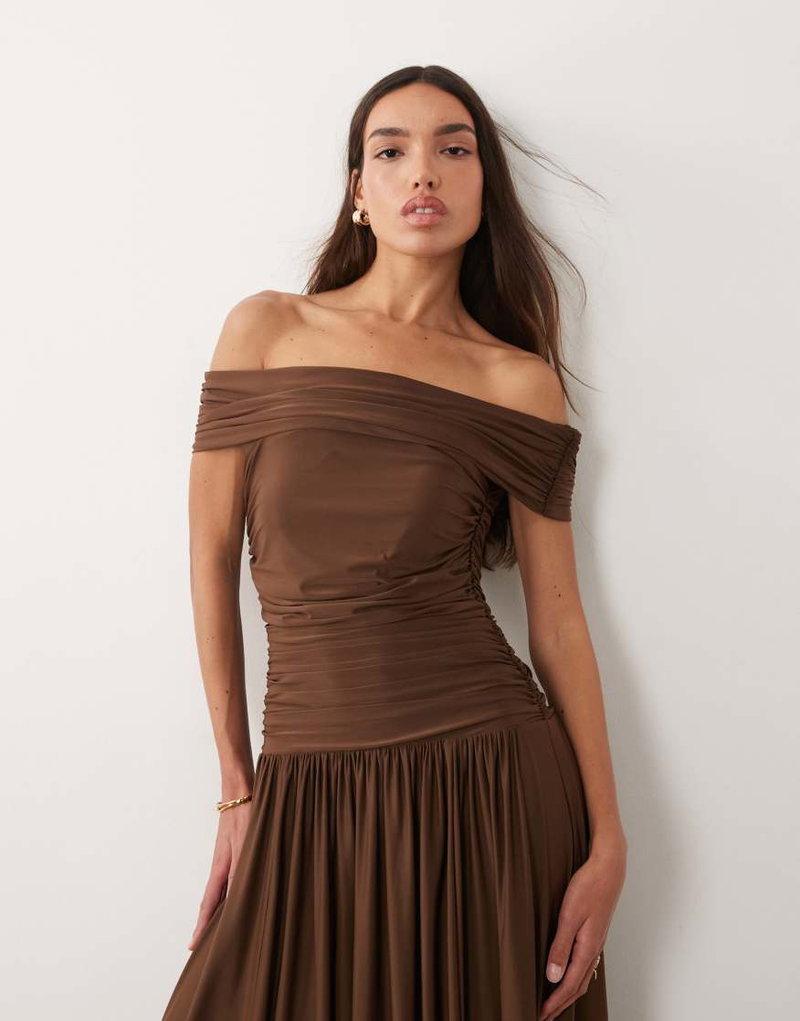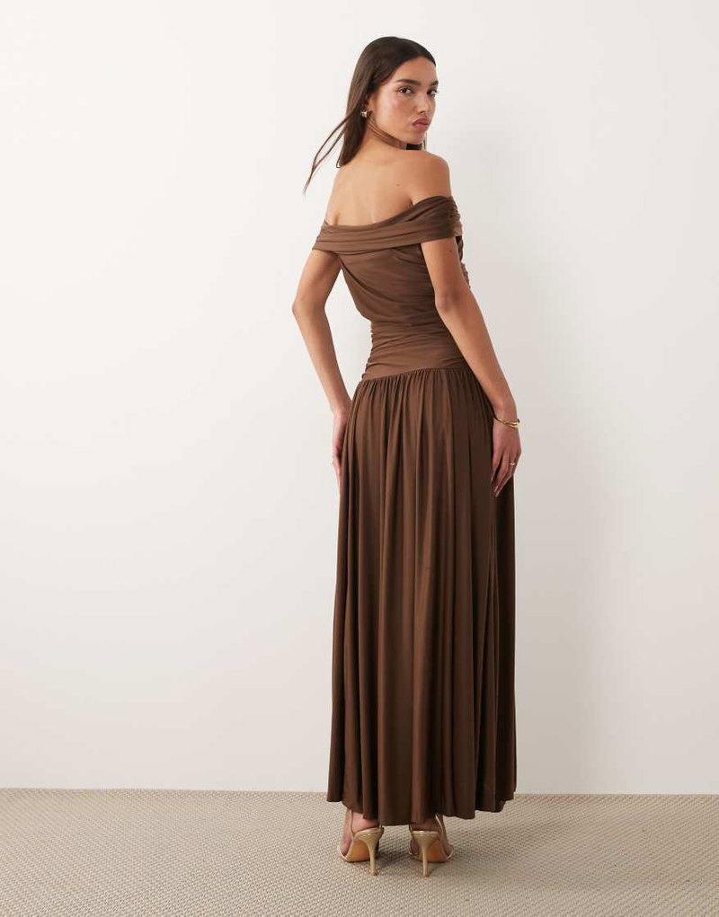 Off The Shoulder Drop Waist Maxi Dress.