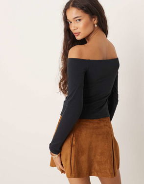 Abercrombie & Fitch Off The Shoulder Long Sleeve Hardware Detail Top In Brown