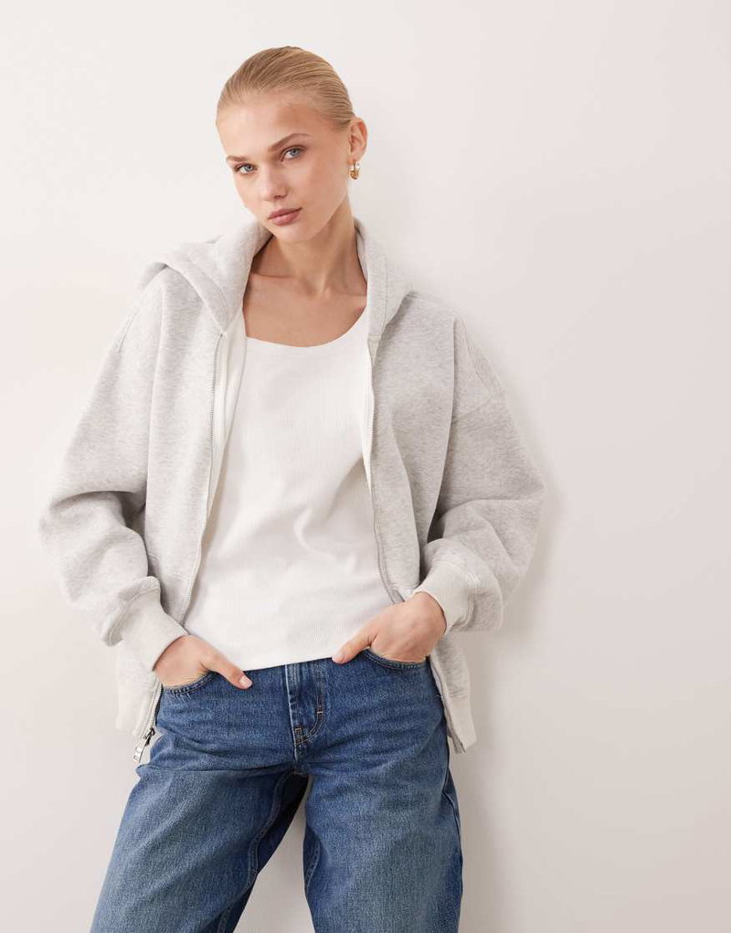 Abercrombie & Fitch Oversized Zip Up Hoodie In Gray Heather
