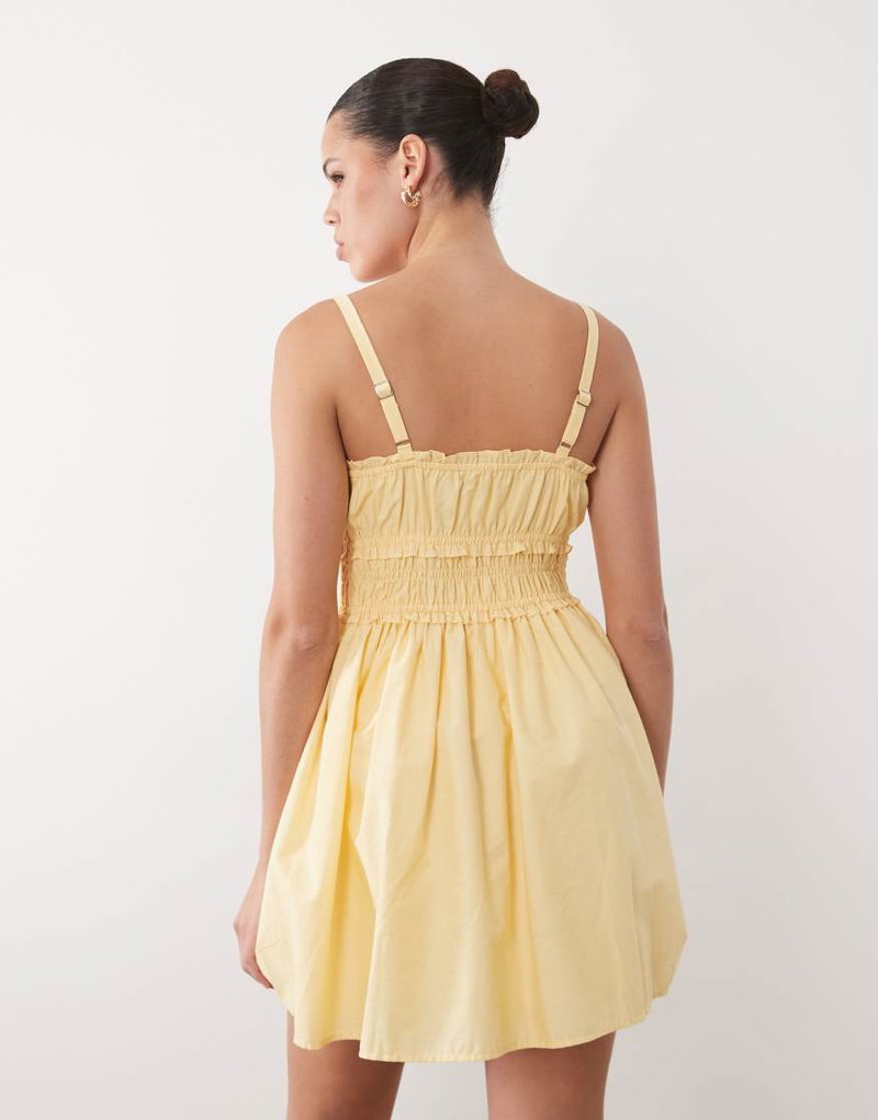 Abercrombie & Fitch Ruched Waist Strappy Mini Dress In Yellow