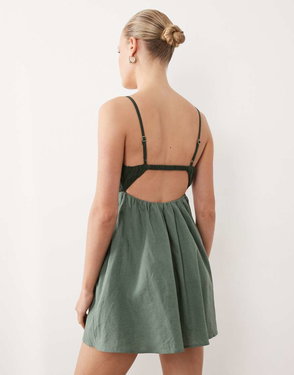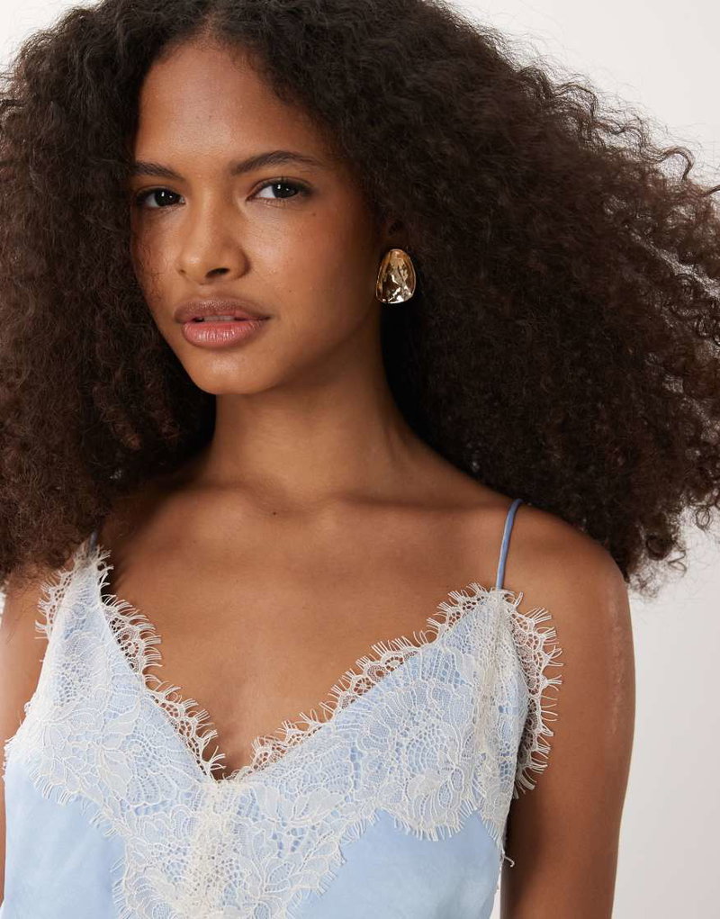 Abercrombie & Fitch Satin Lace Trim Strappy Mini Dress In Light Blue