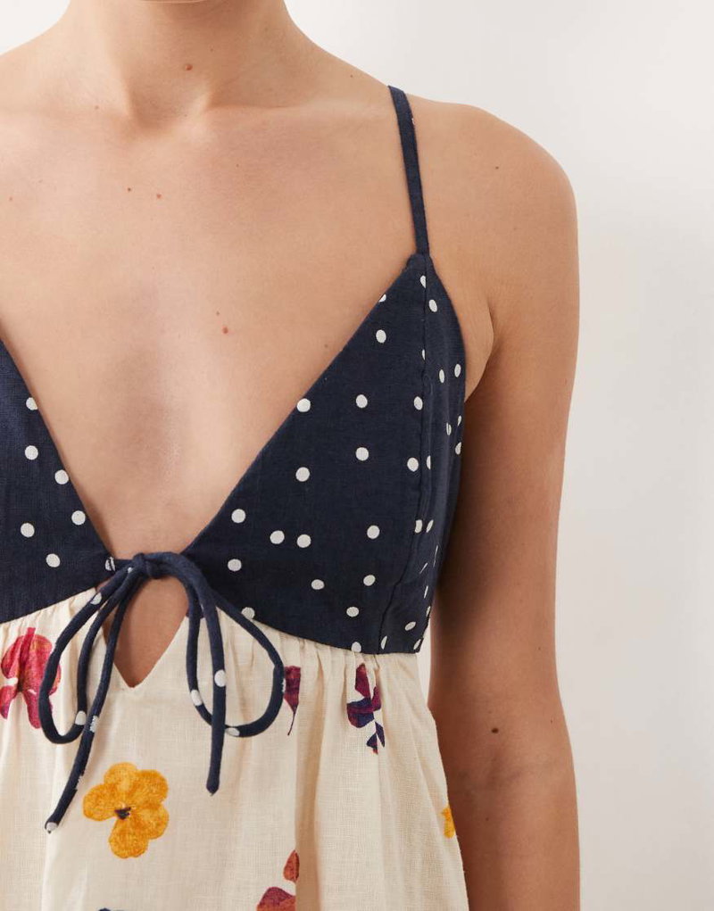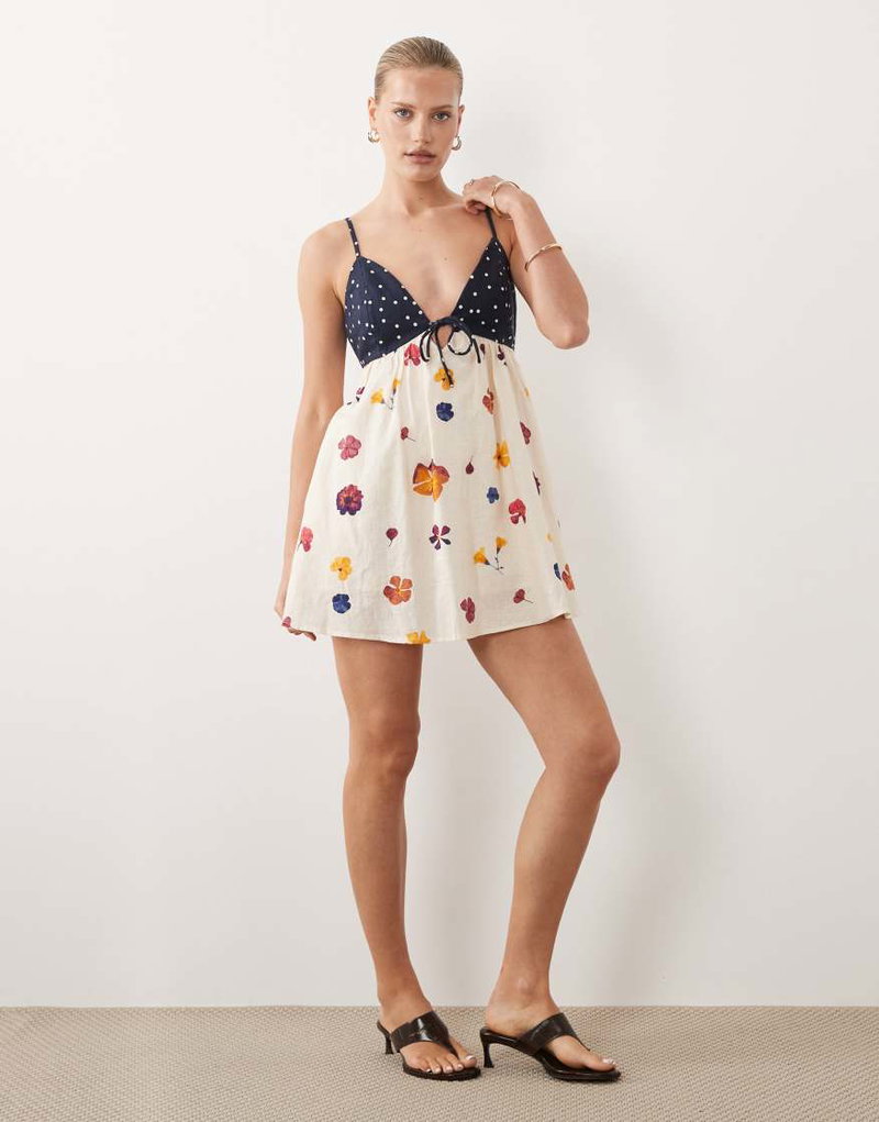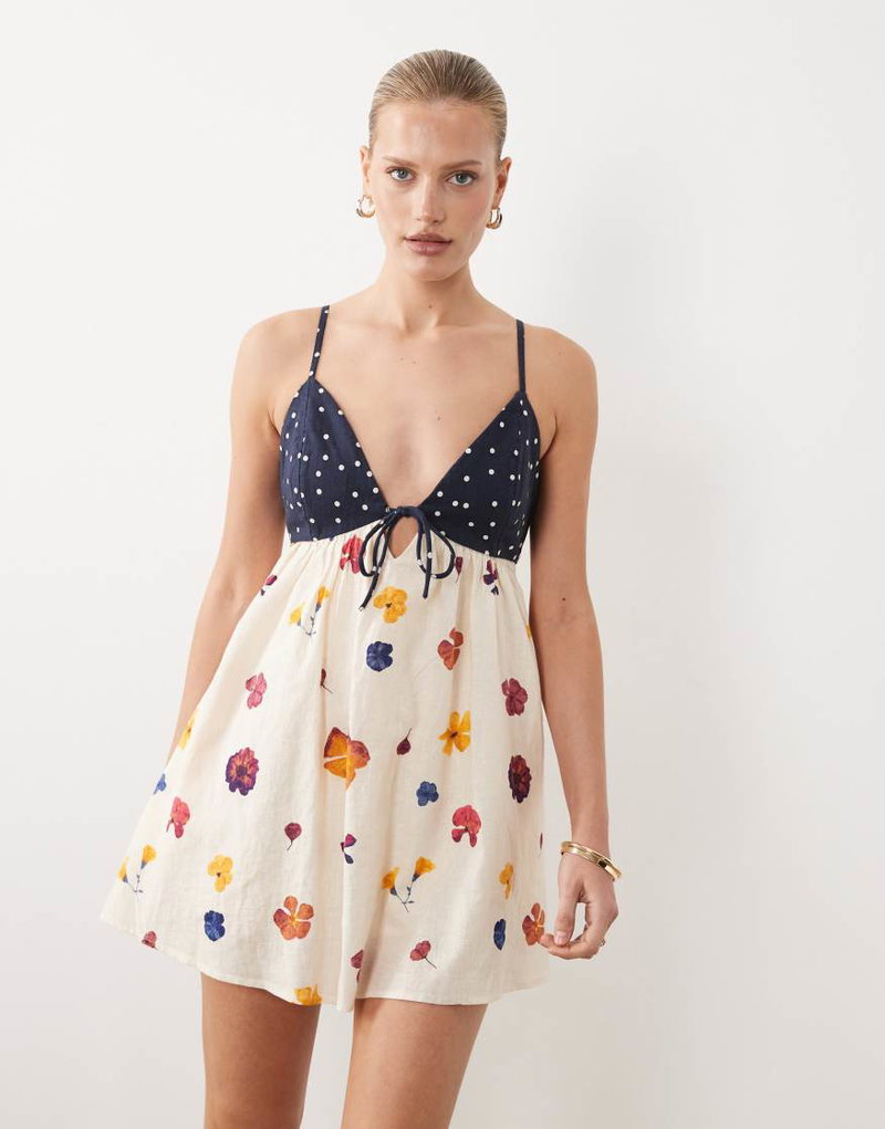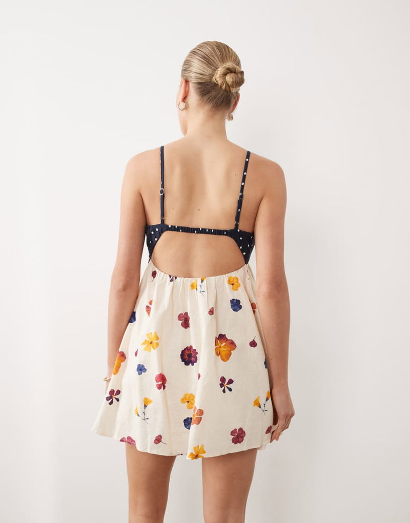 Abercrombie & Fitch Strappy Flowy Mini Dress With Built In Bra And Skort In Floral Print
