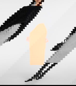 High rise Elasticated waist Midi cut Bubble hem Regular fit.