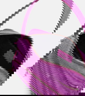Grained calfskin shoulder bag in tones of blue. Floral pattern printed throughout· Fixed shoulder strap· Adjustable and detachable crossbody strap· Zip pockets at face · Logo-engraved key charm at zip pocket· Silver-tone logo stamp at face· Zip pocket at back face· Bumper studs at base· Two-way zip closure· Patch pocket at interior· Faux-leather lining· Logo-engraved silver-tone hardware