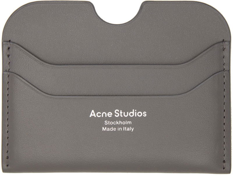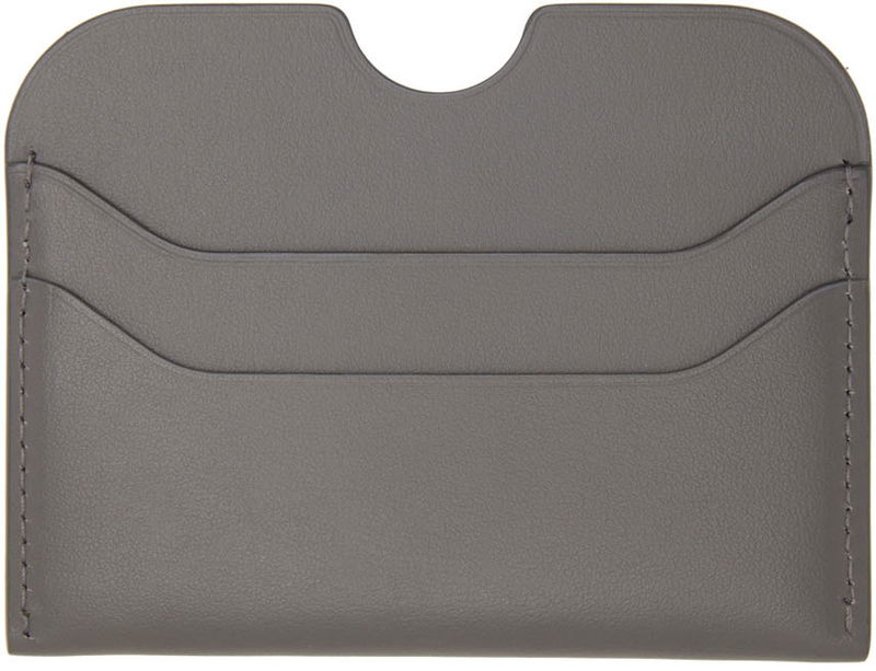 Buffed leather card holder in gray.