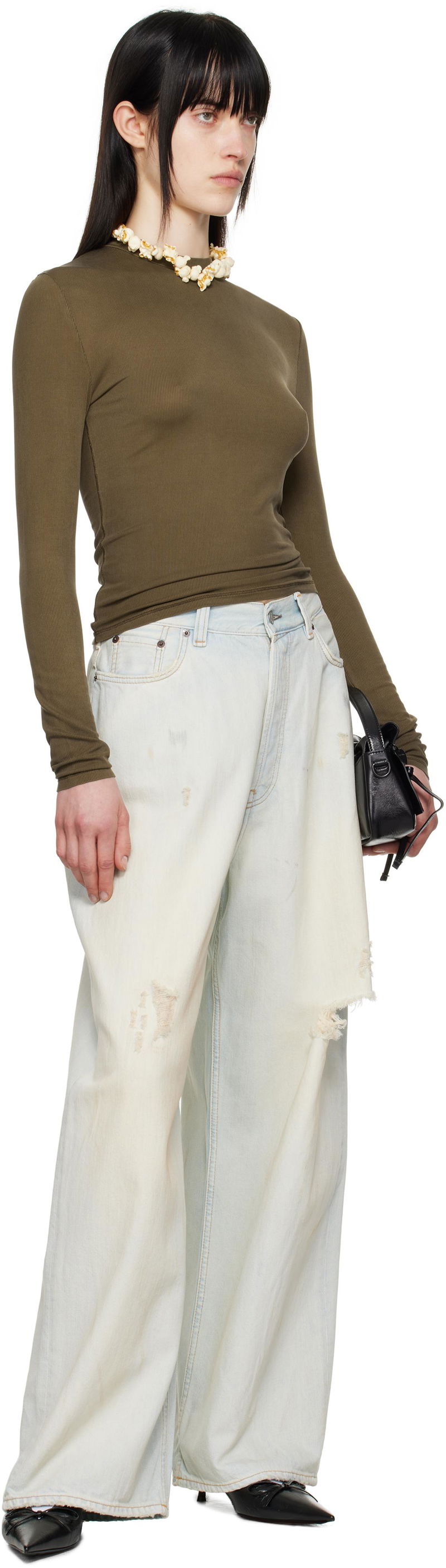 Stretch recycled cupro ribbed jersey T-shirt. Spray-dyed fading throughout.· Crewneck· Logo patch at back collar.