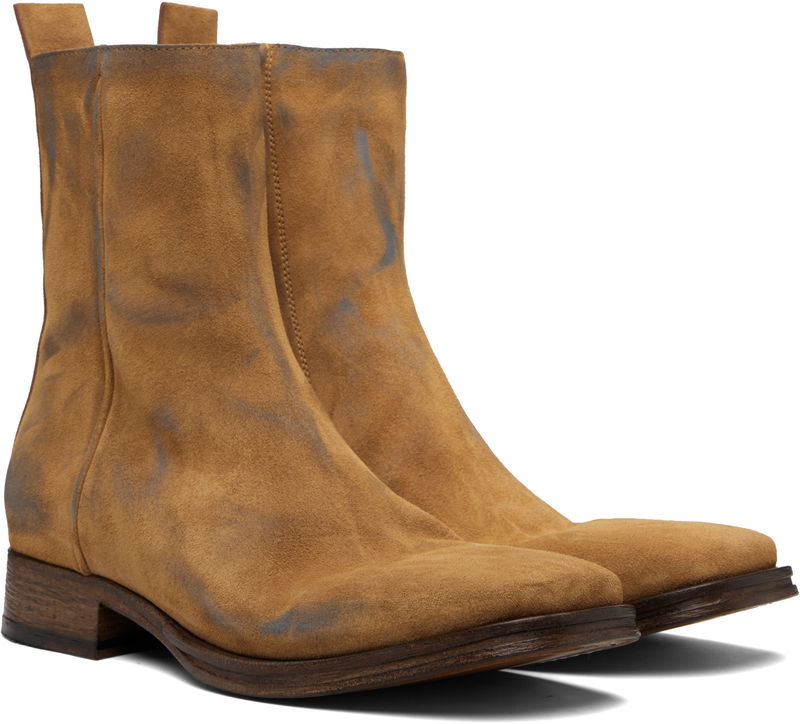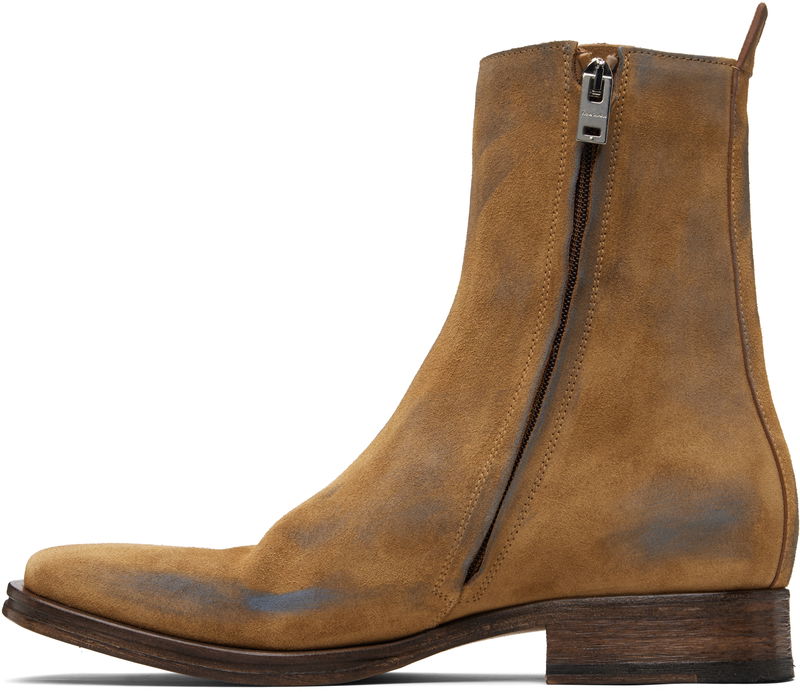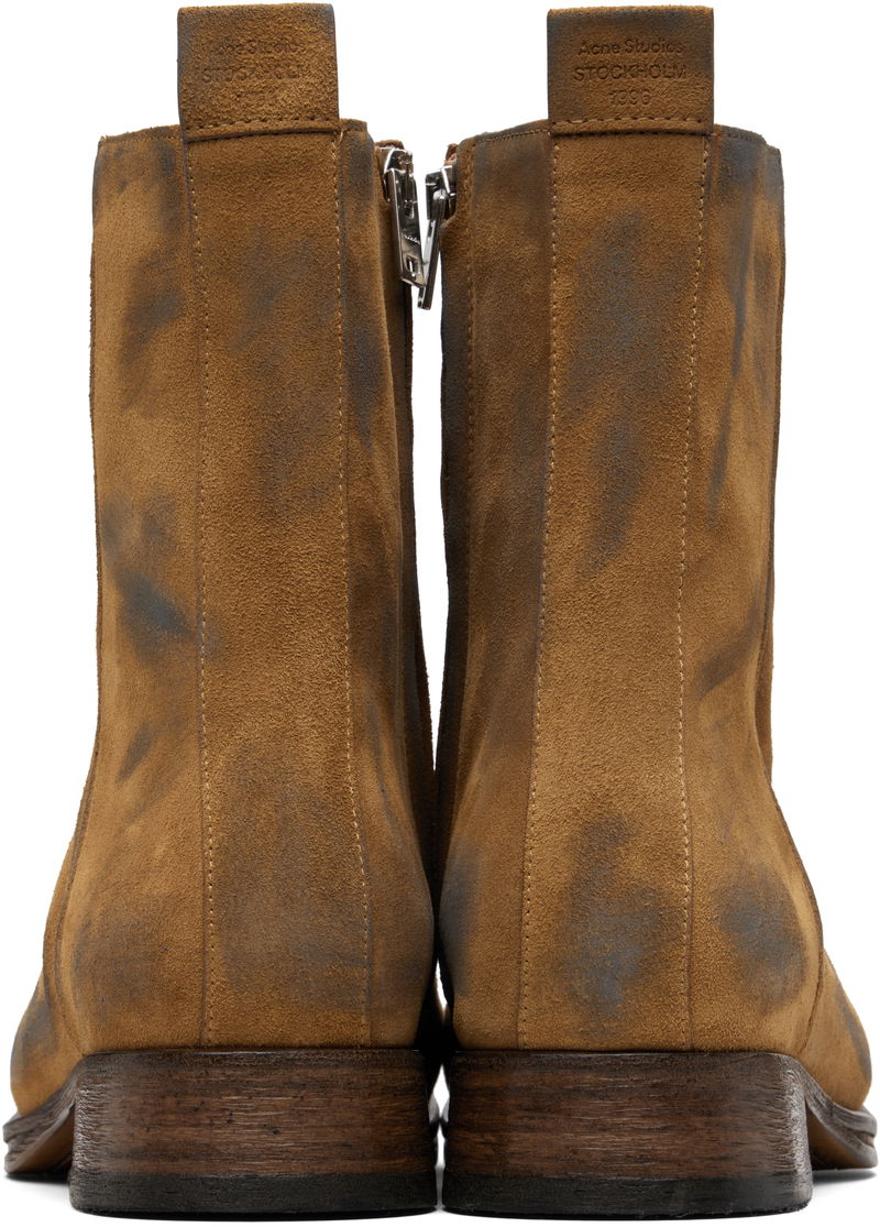Ankle-high calfskin suede boots.