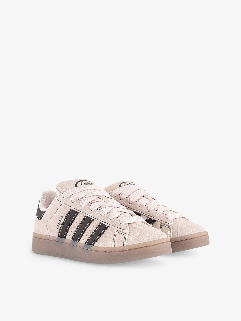 adidas suede low-top trainers. Low top, round closed toe, branded stripes at sides, contrast stripes, contrast panels.