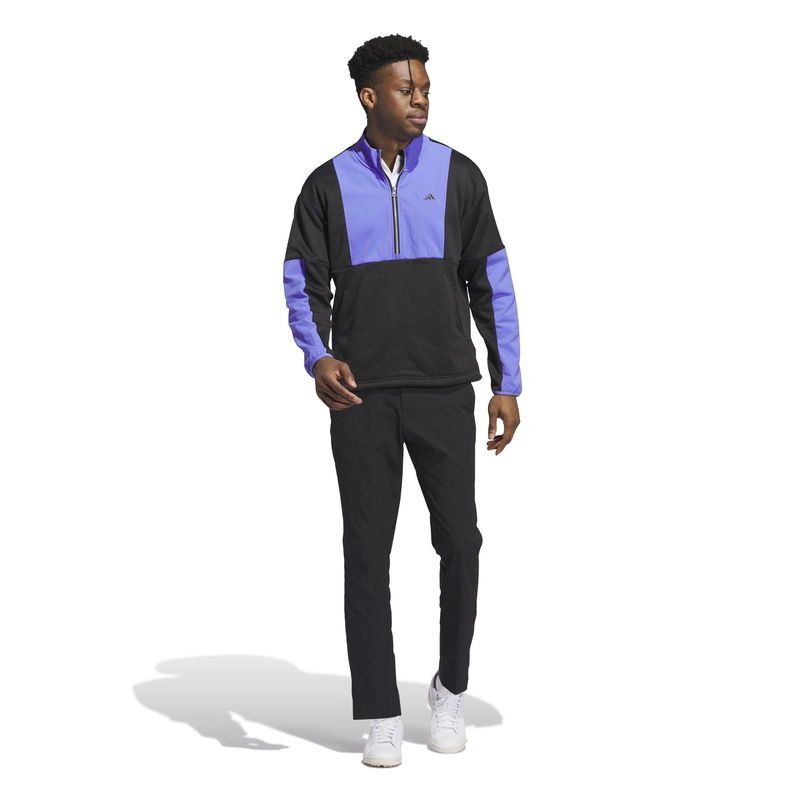 The adidas Go-to DWR Hybrid Half Zip Sweatshirt helps you stay warm and dry during those unpredictable early morning tee times. The funnel neck and adidas logo on the chest give this piece a sleek look, while also creating brand recognition. The combination of both fleece and stretchy twill means that you can feel comfortable and mobile to master your swing on the course.