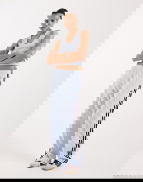 Snap button side detail. Elasticated waist. Side pockets. Stripe pattern.