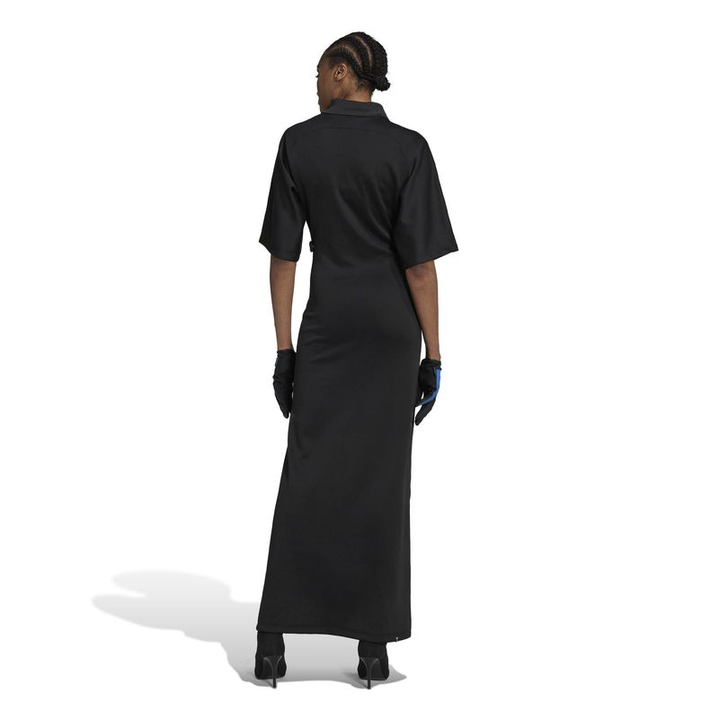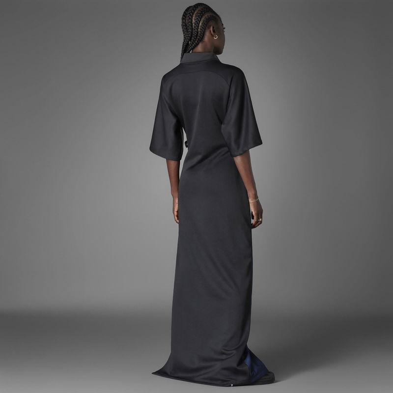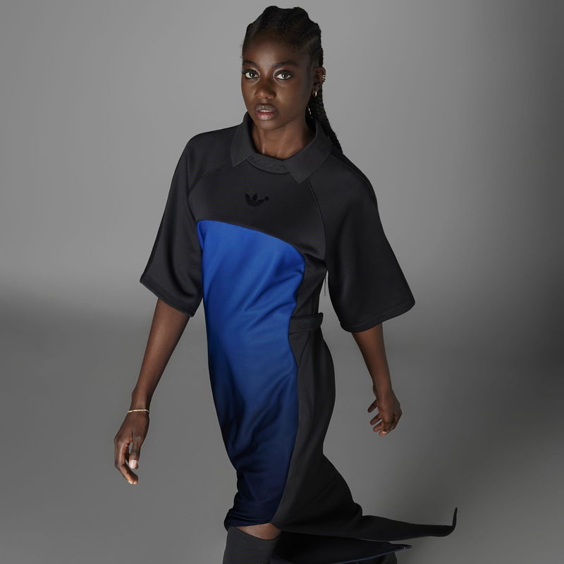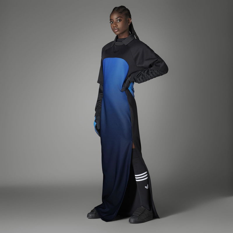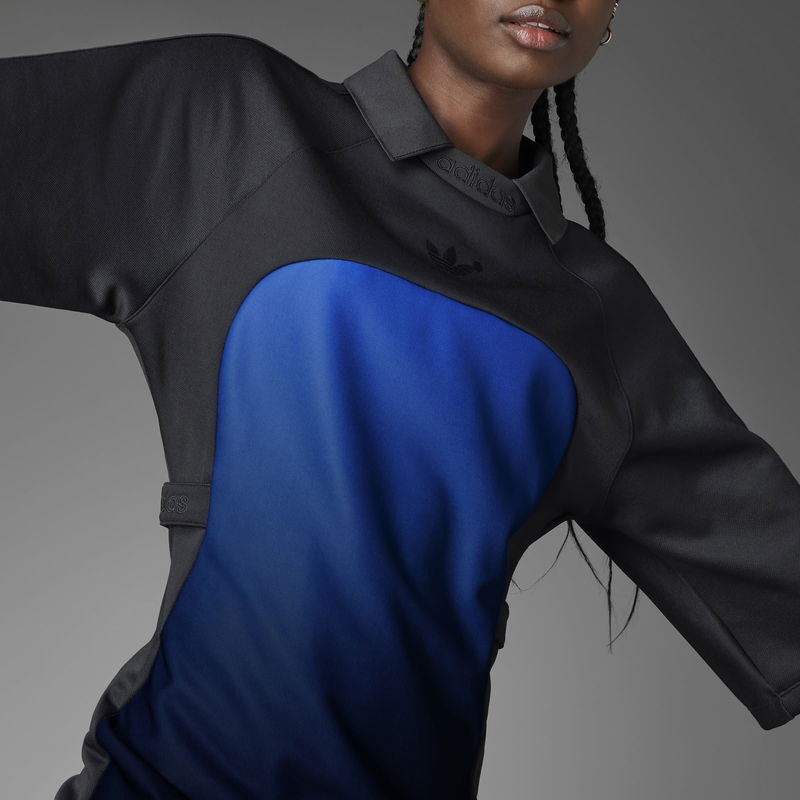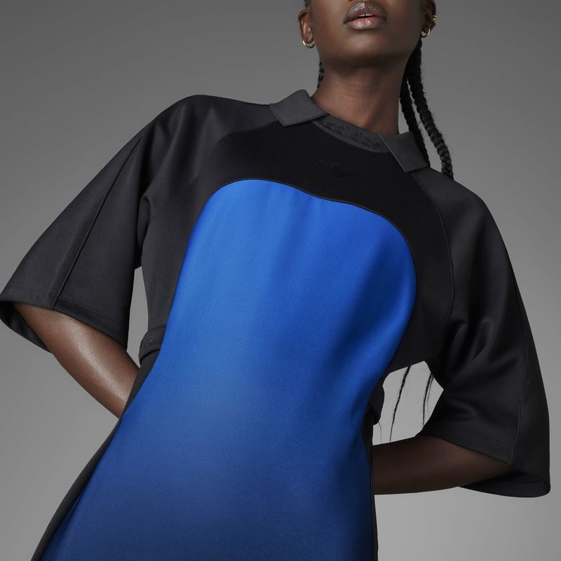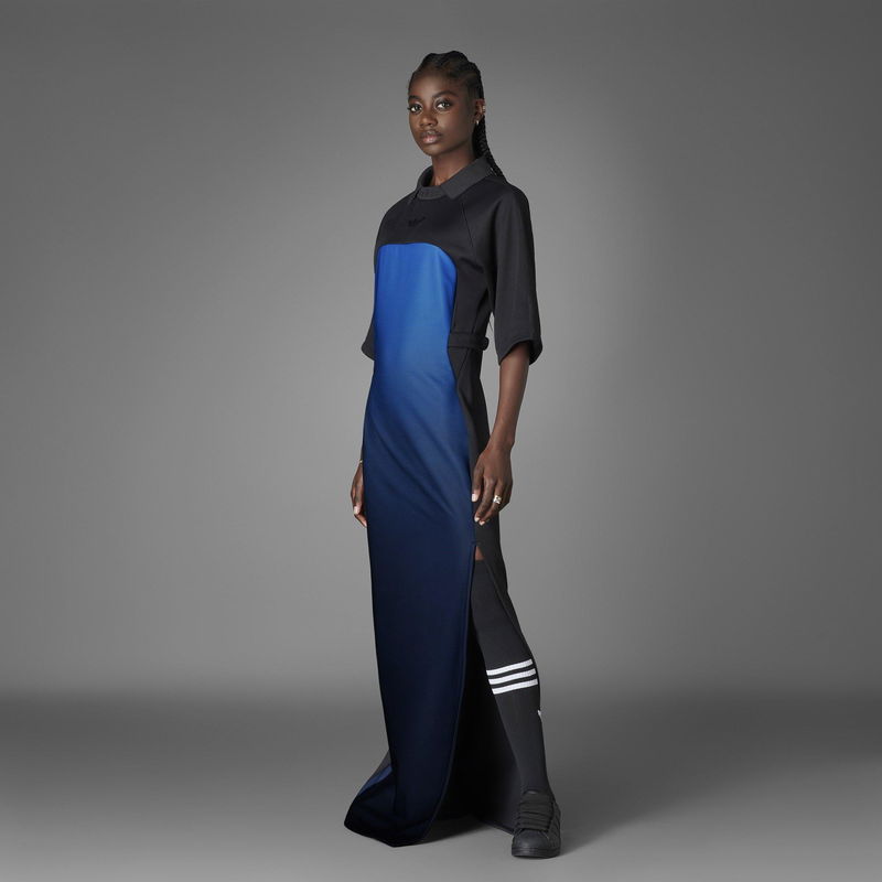Redefine conventional fashion with the Blue Version Dress from adidas, where an innovative approach to design merges effortlessly with timeless elegance. Launched in fall 2021, adidas' Blue Version Collection melds traditional athleisurewear and brand codes with luxe materials and elevated silhouettes. Paying homage to the brand's rich history, every design from this collection reimagines a classic adidas look to inspire individual expression in everyone. Made from a luxurious polycotton blend with added stretch, this dress is designed to envelop the wearer in unmatched comfort and freedom of movement. Impeccable attention to detail is evident throughout, as iconic elements of adidas are skillfully reimagined in the realm of sartorial tailoring. Breathing new life into archival sports classics with an innovative eye, this adidas dress elevates the design of retro goalkeeper jerseys by incorporating a mesmerising colour gradient that elegantly ripples down the body. Featuring exaggerated sleeves and a retro collar, this maxi dress is infused with the essence of sports while maintaining its elegance. A high side slit adds a touch of sensuality and sophistication, while the adjustable waist flaps provide a customisable fit that ensures this dress flatters every body type. Endlessly versatile, this dress is perfect for both daytime and evening occasions. Its chic yet sporty style effortlessly transitions from a stylish brunch with friends to a glamorous dinner party. 68% recycled polyester, 30% cotton, 2% elastane, Machine wash cold according to care label instructions.