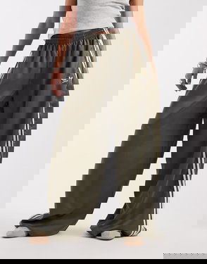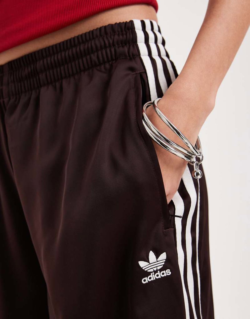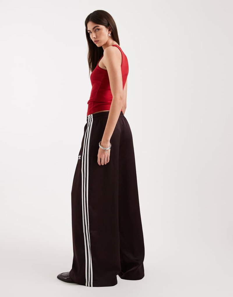Satin Wide Leg Track Pants In Brown