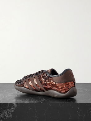 Wales Bonner Karintha Leather And Crochet-trimmed Satin Sneakers