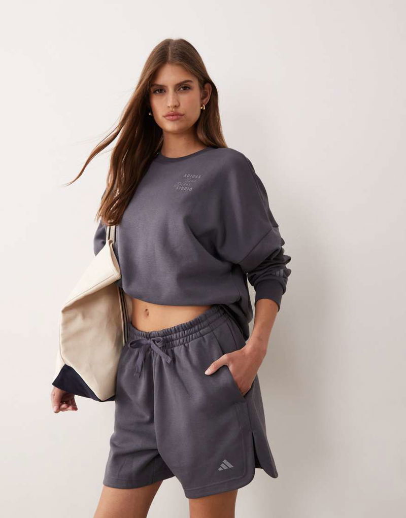 Performance Three Stripes Studios Jersey Shorts In Slate Blue